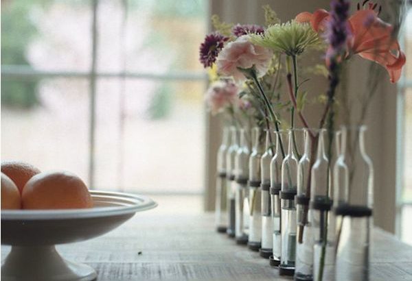 А любители простоты и скромности могут украсить стол цветами, поставленными в миниатюрные пробирки. Получится индивидуальный изящный букет.