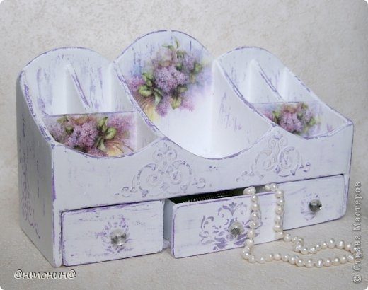 сделан декупаж на стенках камодика из салфеток