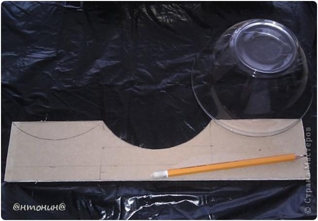И так займемся передней стенкой. По тарелке вычерчиваем полукруг