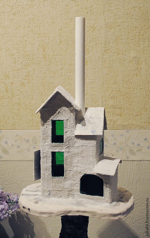 Мне мой дом нравился на всех финальных этапах. И в белом цвете с белым абажуром. Далее он был покрашен в черный цвет для последующей декорации. Но и в черном цвете с серебристо-стальным абажуром он прекрасно выглядел.