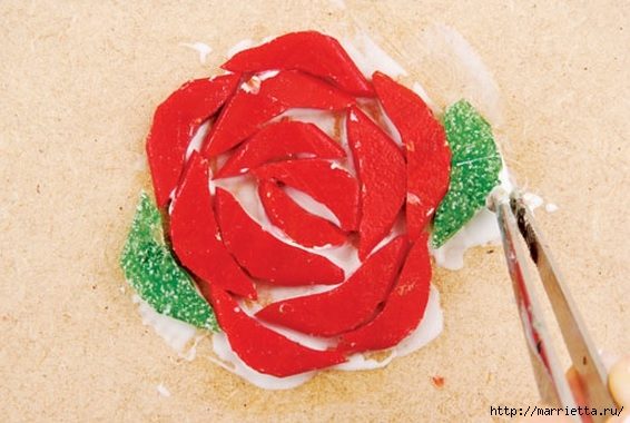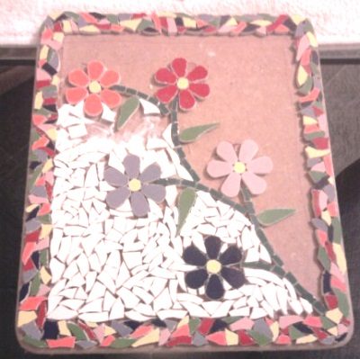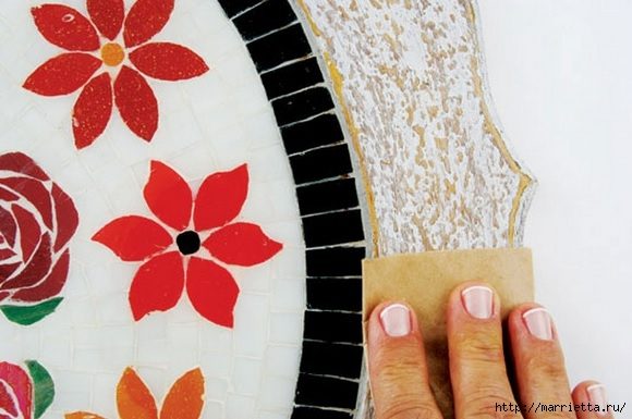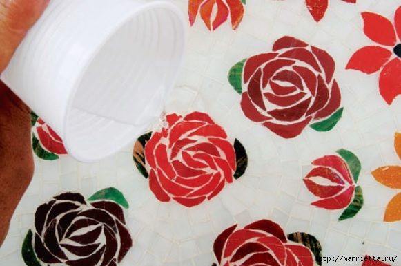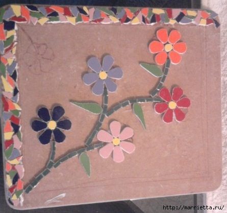Декорирование мозаикой подноса, она из осколков кафельной плитки