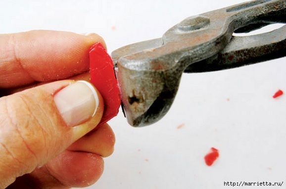 Разбиваем плитку при помощи молотка, на осколках рисуем фрагменты для узора и применяем для их создания кусачки или клещи