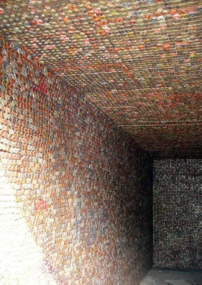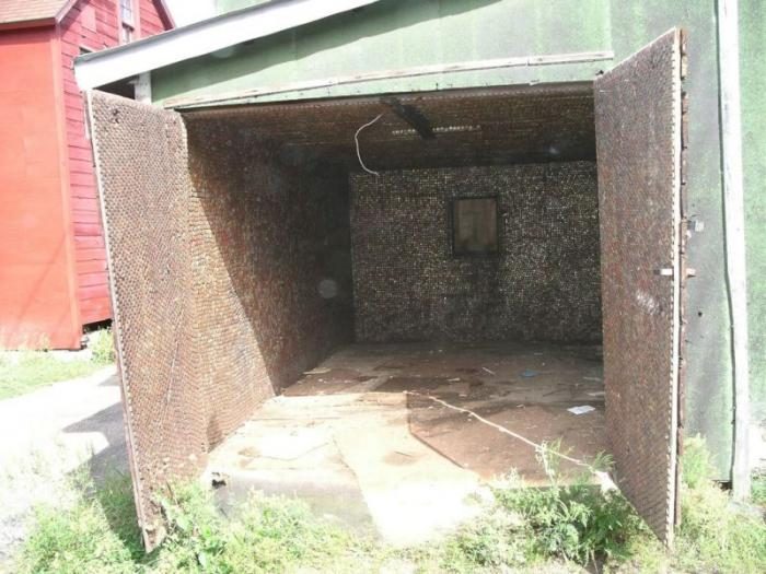 Давайте посмотрим, как один терпеливый и усидчивый умелец, отделал свой гараж пробками из-под пластиковых бутылок.