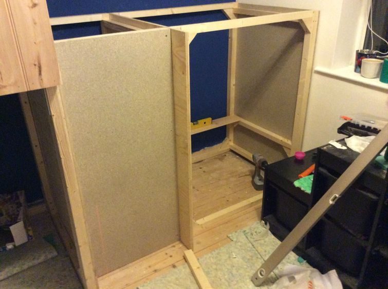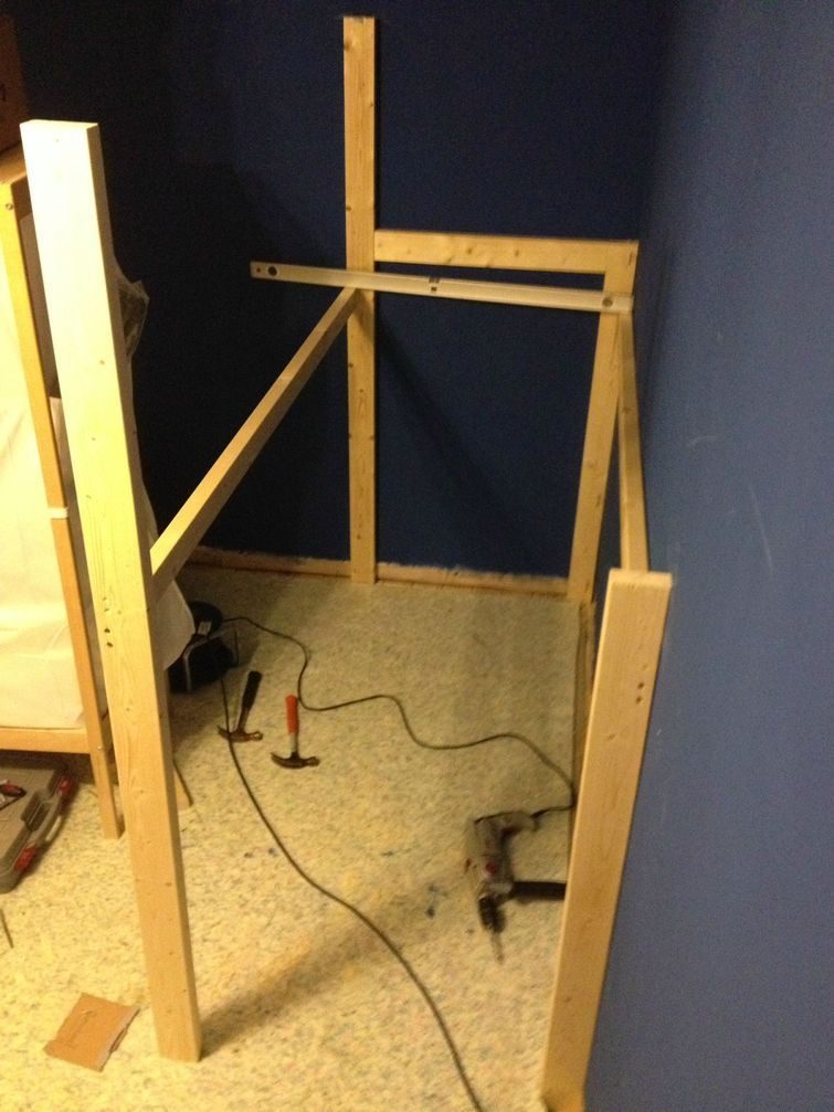 Вы можете видеть первую и последнюю планку будущей лестницы, за которой будет находиться шкаф для белья, игрушек и прочих детских вещей