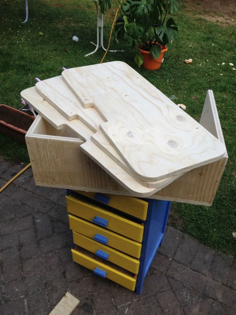 Вырезал отверстия для ящиков, а вырезанные фрагменты будут служить ручками ящиков