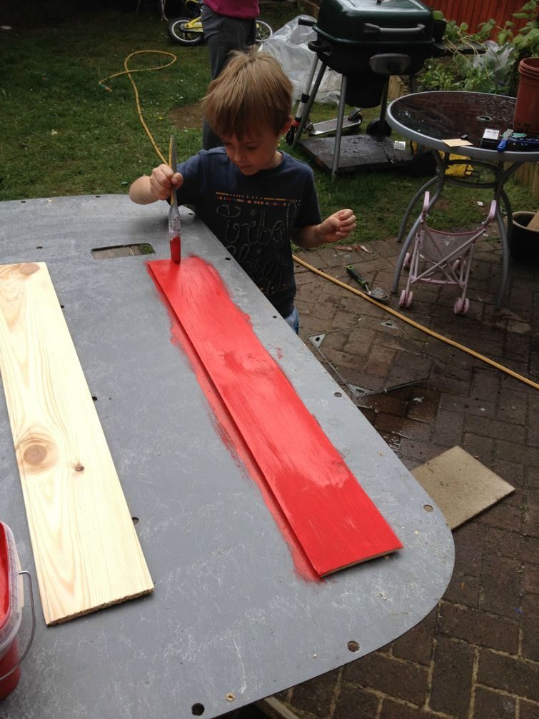 Пришло время позаботиться о внешнем виде домика. К работе подключил детей (напоминает момент из сказки про Тома Сойера)
