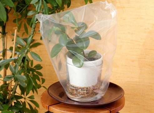 — Идеальным завершающим штрихом для этой конструкции станет «колпак» из прозрачной пленки. Конечно, его можно и не делать. Но в этом случае имеет смысл убрать в индивидуальные теплички или прозрачные пакеты хотя бы самые «нежные» растения. (Минус: растения с мясистыми или опушенными листьями – сенполии, пеларгонии, каланхое и другие – в импровизированной тепличке без регулярного проветривания могут загнить или покрыться плесенью. Другая вероятная сложность – далеко не все экземпляры, которые прекрасно проведут время в тепличке, можно будет вернуть к привычному содержанию, просто сняв с них пакет. Возможно, некоторые растения придется постепенно вновь приучать к «открытому содержанию» при более низкой влажности воздуха.)