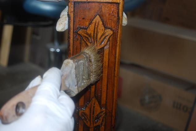 1. Морение, тонирование можно выполнить кистью, или врастирку тряпкой.