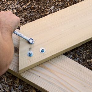 Доски для боковинок отпиливаются по бокам под углом 60 градусов