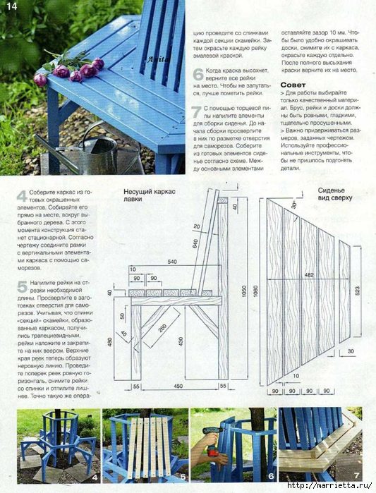 Для создания садовой скамейки (первая фотография выше) вам понадобятся доски: