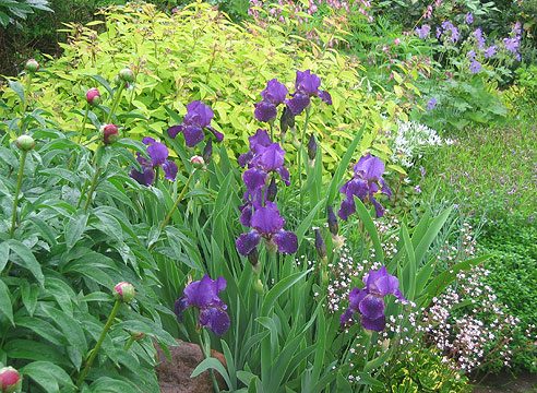 В качестве дренажа для нее использовали строительный мусор, обломки кирпича, шифер. Сверху насыпали грунт и разложили валуны. Вокруг пруда высадили бадан, хосту, лилейники, ирисы, бузульникзубчатый, а горку заселили самые распространенные почвопокровныеи низкорослые растения. Именно такую схему обустройства водоема и альпийской горки предлагали многие книги и журналы, и мы тоже пошли по стандартному пути. Первое время, когда растения уже разрослись, все выглядело достаточно привлекательно. Но уже года через три они стали теснить друг друга, и стало очевидно, что горку нужно переделывать. Все буйные растения переселились в цветники, а их место заняли более компактные и не такие агрессивные.