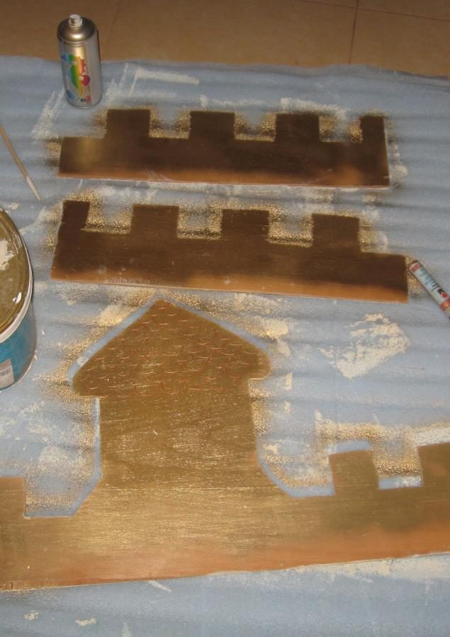 Башенки и часики фанерка, покрытая краской из баллончика, циферблат от старых часов, бумага для скрапа.