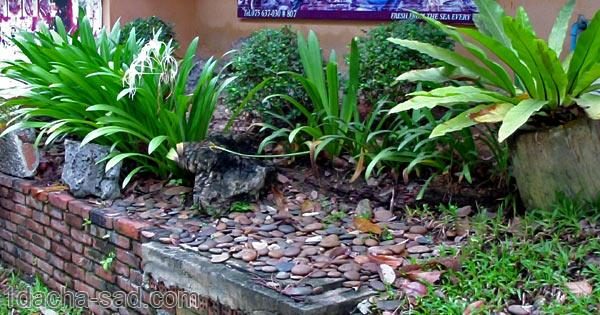Галька – очень декоративный материал и его можно применить во многих местах для украшения дачи и сада.