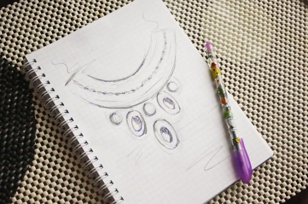 Обычно я сразу вырезаю форму будущего колье, и потом уже отталкиваюсь в самом декоре от неё, но в этот раз решила наоборот сделать. Вырезаем вверху только форму горловины: