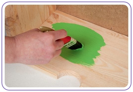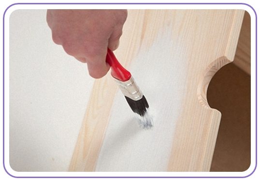 2. Спустя пару часов, когда ранее окрашенные поверхности готовы к началу следующего этапа декупажа комода, покрываем всё, что было окрашено белым цветом, фиолетовой краской.