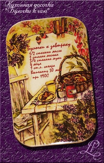 Комплект, декоративная тарелка и кухонная досочка. Прямой декупаж, распечатки на рисовой бумаге, шеллак+гуммиарабик, контур, акриловые краски, акриловый лак.
