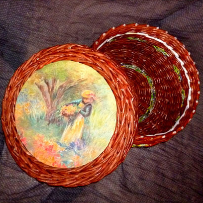 Шкатулка сплелась для коллеги на день рожденья. Имениннице понравилась. Вообще у меня дома немного моих поделок, ведь они не задерживаются долго. Приходит кто-то ко мне в гости и домой уходит со шкатулкой или корзинкой, в которых частичка моей души.