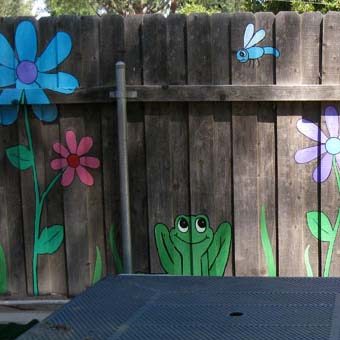 Если вы не планируете замаскировать забор высокими или плетущимися растениями, предлагаем вам его весело покрасить.Если внешняя сторона забора является визитной карточкой вашего дома, то с внутренней стороной вы вольны делать все, что угодно. Даже если у вас нет особых художественных талантов, даже небольшая роспись на вашем заборе придаст совсем иное настроение вашему саду.