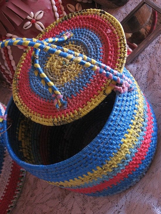Думаю, всем вам известна такая техника, а может, кто и успел попробовать, как плетение или вязание «пряжей» из пластиковых пакетов. Я хочу предложить вашему вниманию варианты создания вполне практичных корзин, чаш или блюд, сплетенных из ненужных пакетов. Сначала посмотрим различные варианты исполнения, а чуть ниже вас ждут парочка мастер-классов — выкладывания корзинки из полиэтиленовой косички и плетение нитью по основе. Приятного просмотра!
