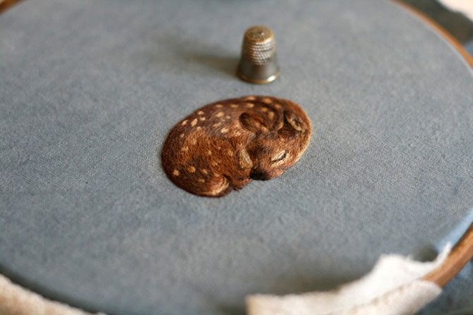 Художник-иллюстратор Хлоя Джордано вышивает малюсенькие, размером с напёрсток, изображения животных.
