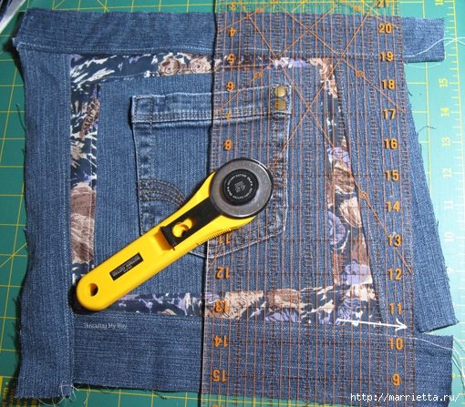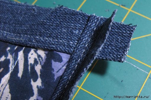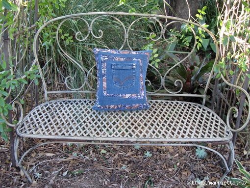 Если вам нужна подушечка для садовой скамейки, предлагаю вам ее сшить из старых джинсов.