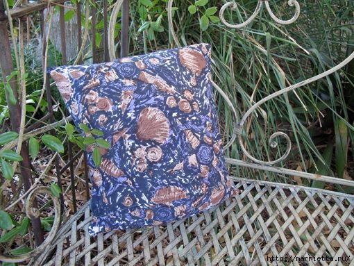 Данная подушка сшита в стилей крейзи, с использованием подходящей по расцветке или контрастной хлопчатобумажной ткани.
