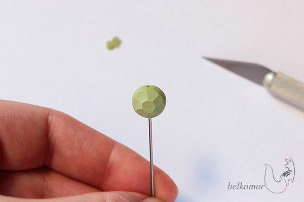 Пластику нужно хорошо размять, чтобы в бусинах не оказалось крупных пузырей и трещин, которые обнаруживаются при резьбе и портят внешний вид. При этом беспокоиться о гладкости поверхности и безупречной чистоте – не так уж необходимо.