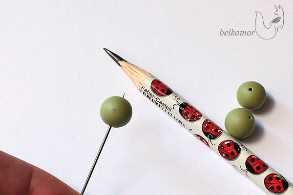 После запекания беру карандаш и нахожу центр будущего цветка с обеих сторон бусины – они будут двусторонние.