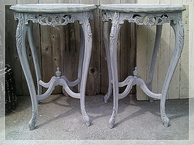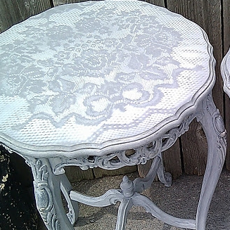 Столешницы на фотографиях украшены кружевной трафаретной росписью.