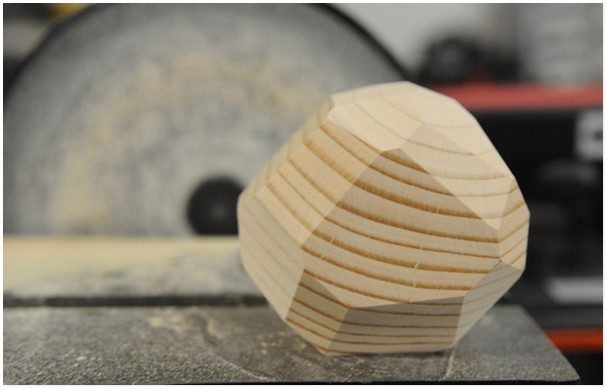 Это очень интересный и необычный объект, который может быть использован в качестве пресс-папье или просто как декоративный предмет, который можно разместить на полке. Он напоминает граненый драгоценный камень, но сделан из дерева.