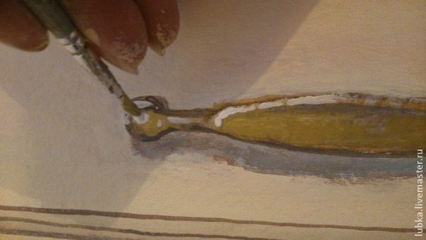 Для тех, кто решит рисовать самостоятельно, даю несколько советов. Начинать следует более жидкой краской, а под конец стараться добавлять меньше воды, тщательно растирая краску.