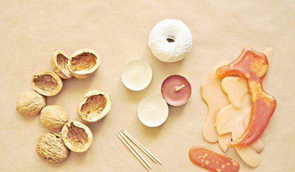 Очень интересная идея декора свечей своими руками с использованием ореховой скорлупы.