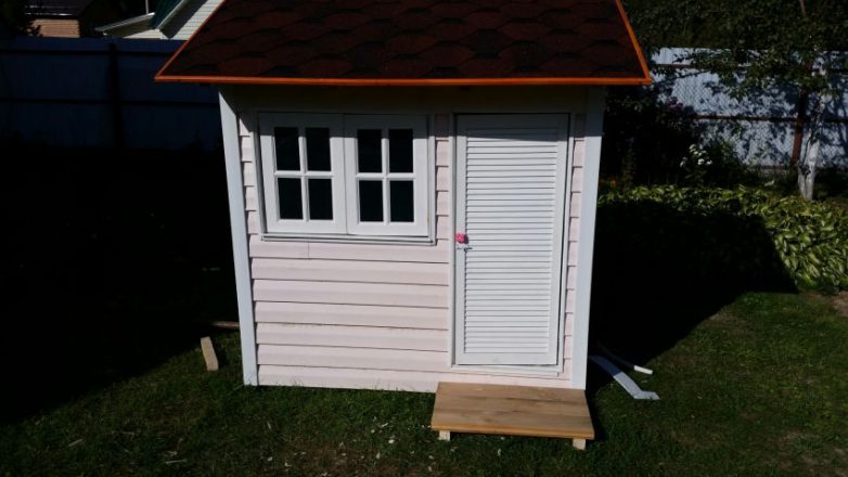После строительства гаража на даче, остались кое-какие материалы, что и сподвигало меня на строительство домика для дочки. Получилось примерно как «Каша из топора».
