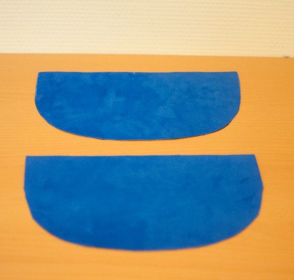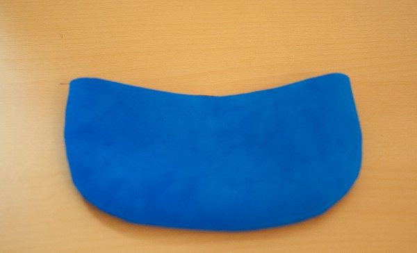 4. Кладем две детали крышки клатча лицевой стороной друг другу и стачаем вместе по полукругу. Выворачиваем на изнанку, чтобы получился карман с открытым верхом.
