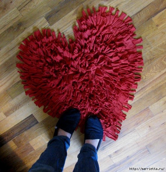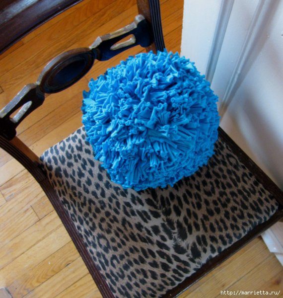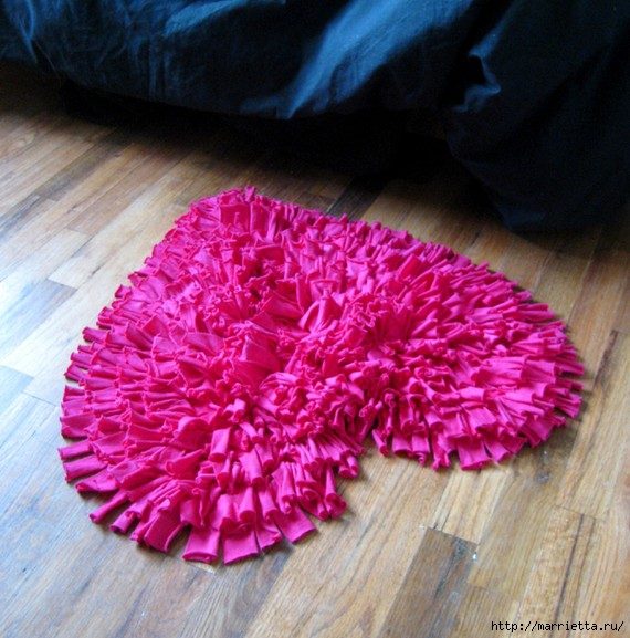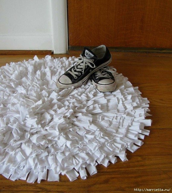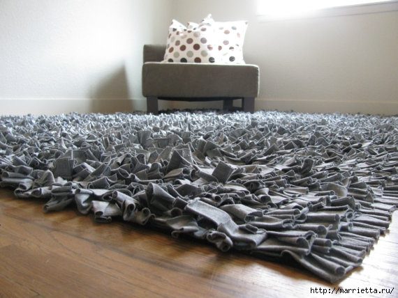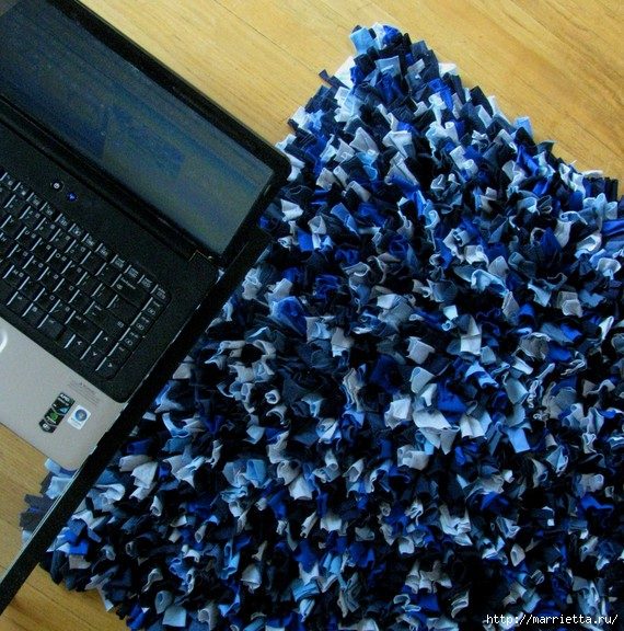 И на самом деле все очень просто – только времени может занять много – но если приноровится, то можно и по-быстрее такую красоту смастерить из трикотажа – например старых маек, а можно и новый купить в магазине тканей, разноцветный и сделать рисунок.