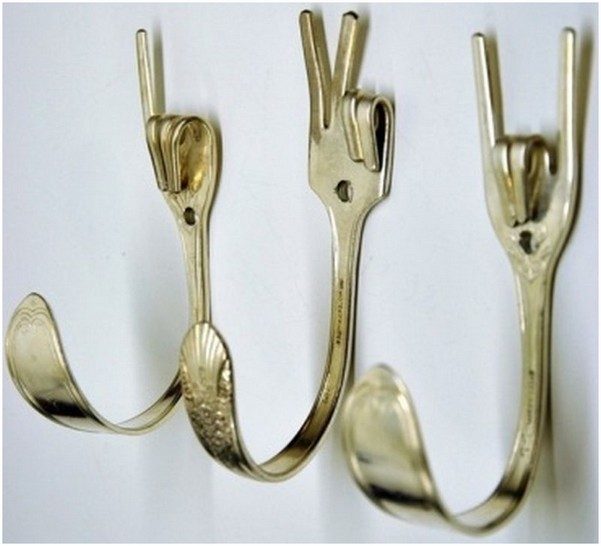 Возьмите старые столовые приборы, и изогните. Вероятно, это одна из наиболее интересных идей!