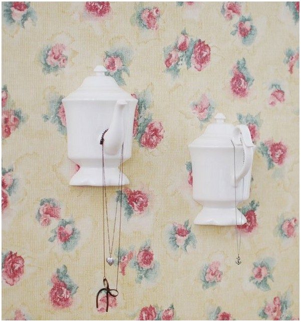 Если Вы знаете, как резать стекло безопасным способом, вероятно, можно использовать и чайник. А потом, повесить свои драгоценности на такие оригинальные крючки. Это неожиданно, это восхитительно, и это добавляет нотку викторианского стиля в жилое пространство.