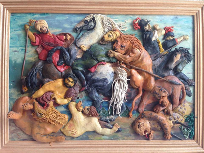Когда Светлана играла со своими детьми, она заметила, как расслабляюще действует пластилин: простые манипуляции с податливым материалом приносят невероятное спокойствие. Фигуру за фигурой Светлана складывала их в одну композицию на радость себе и своим дочерям. Позже, уже после развода, женщина вспомнила о целительной силе этого простого материала, и начала свою первую работу – это была репродукция картины Брюллова «Последний день Помпеи».