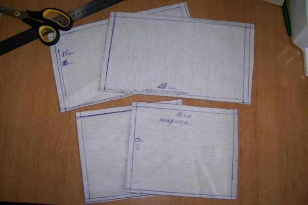 кроим ткань, размеры могут быть разные, нужно учитывать запасы для швов, сшиваем