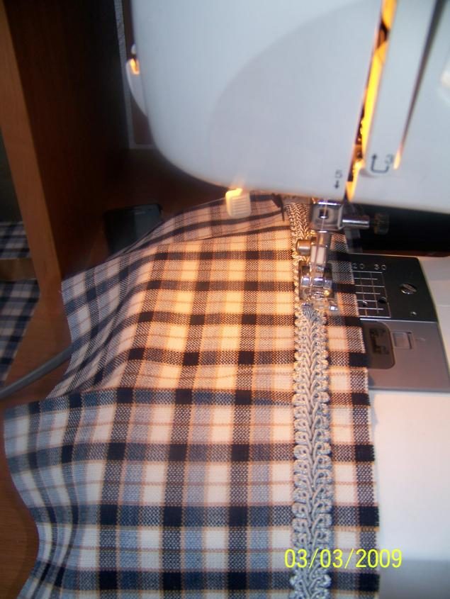обтягиваем крышку, тесьмой закрываем все неровности… другого цвета не было.