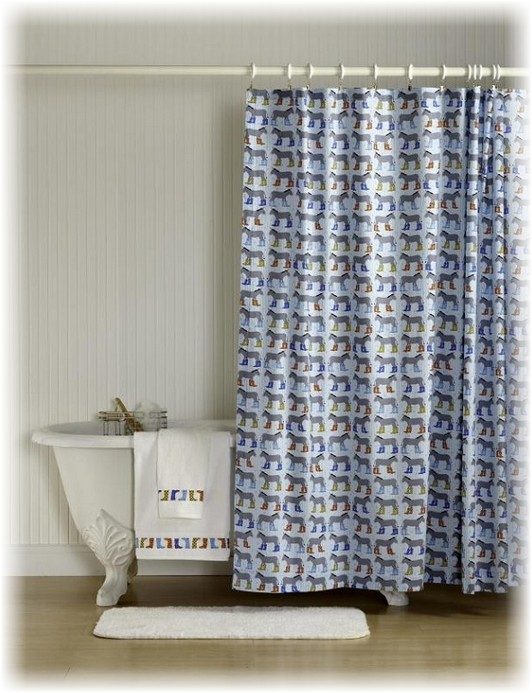 Шторки в ванную с изображением животных понравятся детям, и будут хорошо работать против белой или серой стены. При декорировании остального пространство, используйте занавеску в качестве координационного центра и подберите аксессуары, подходящие по цветовой гамме.