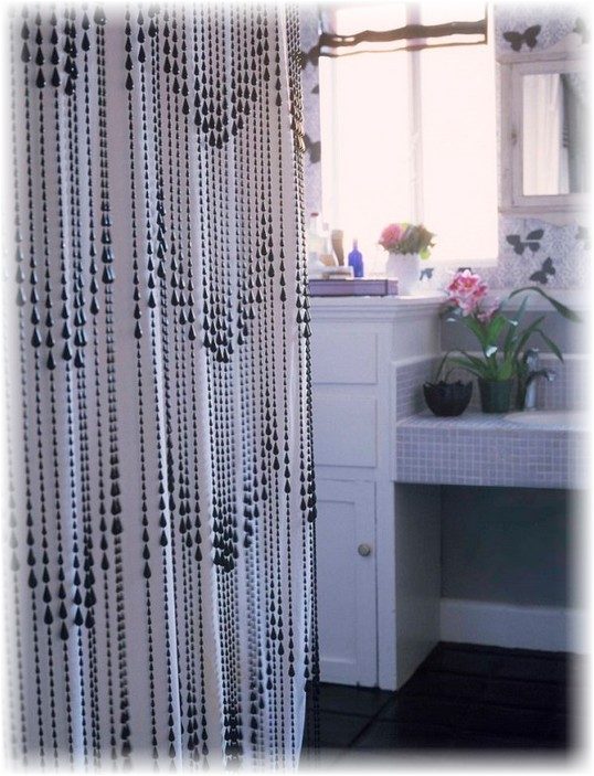 Никакие занавески для душа не будут выглядеть так потрясающе, и быть такими простыми, как шторки в ванную из бисера. Обычная штора из бисера соединенная с самой простой занавеской для душа сделает дизайн ванной комнаты просто потрясающим. Для шикарного вида стоит выбрать черный бисер, а для веселья, использовать разноцветные неоновые цвета.