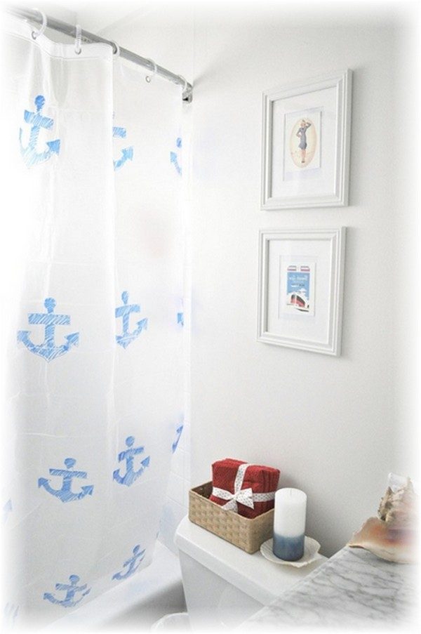 Но можно использовать пластиковые шторки вместо ткани, добавить кружево или оригинальные крючки морской тематики, или создать трафарет из картона.