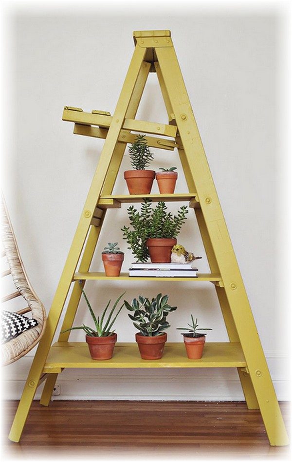 Растения в доме это всегда красиво, но не всегда можно найти достаточно место для живых растений. Следующий проект подскажет простое и оригинальное решение, стеллаж – лестница.