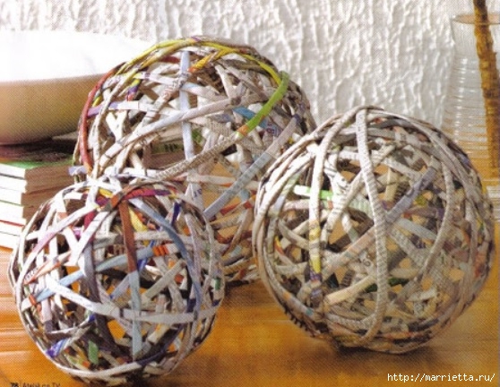 Украсить интерьер своего дома можно чем угодно, даже применив старые газеты или журналы, было бы желание. Вот такие декоративные шары могут у вас получиться из газетных трубочек.