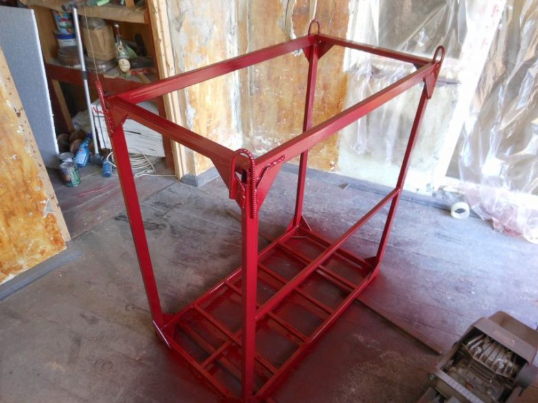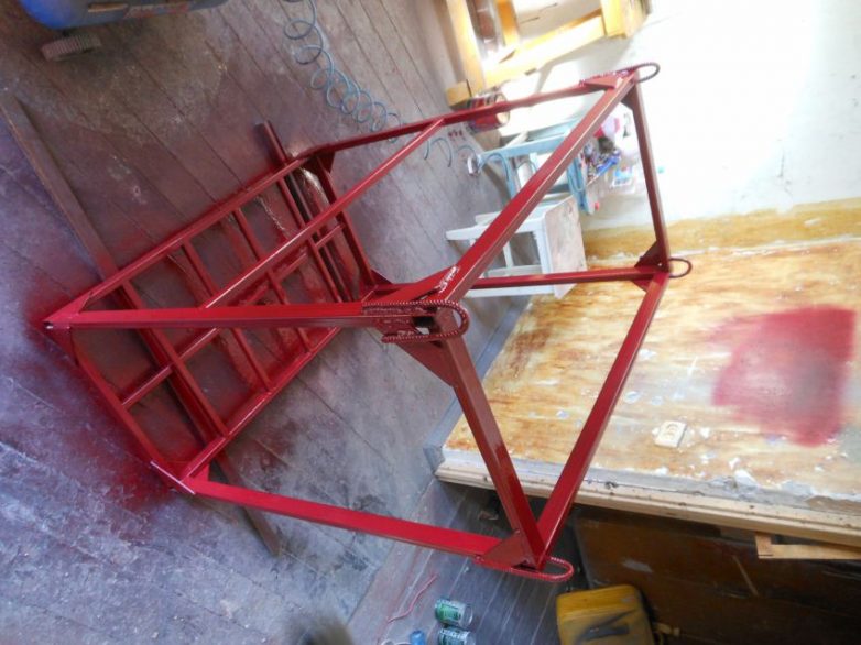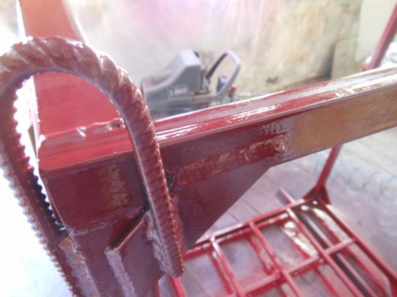 Стропа сделаны из оцинкованного троса 6мм и закреплены на самодельном тройнике из листового металла 6 мм и колесных шпилек от автомобиля Таврия. Для предотвращения травматизма тросы обмотаны армированным скотчем в местах крепления такелажа.