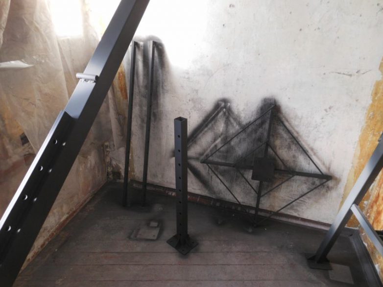 Было решено собрать кран «пионер» и на нем с крыши спустить корзину для работы. День эскизов, просчетов и приступаем к работе.