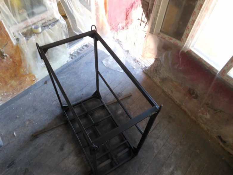 Готорим металл (профтруба 20х20х2мм и 40х20х2мм): чистим витой щеткой и обрабатываем преобразователем ржавчины. Варим корзину (на фото стоит вверх дном)