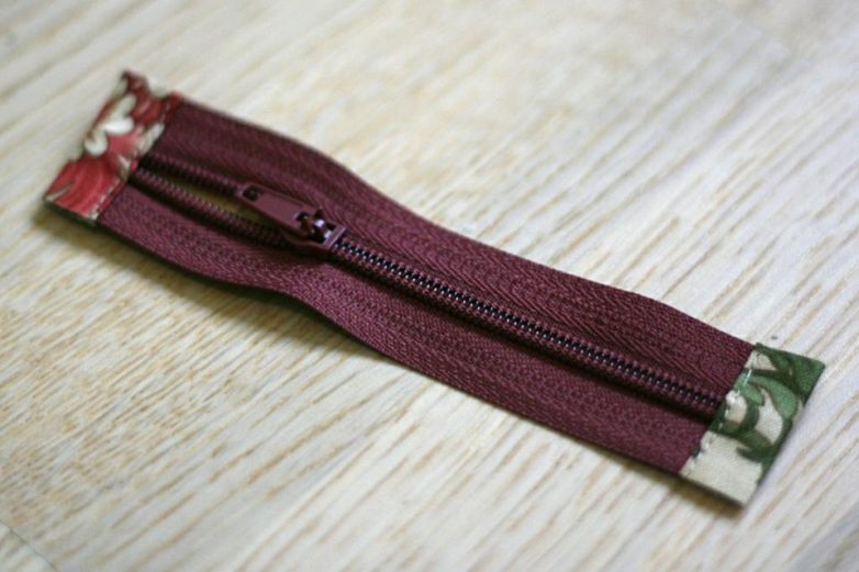 Теперь займемся молнией. Обрежем ее до 13 см и подготовим небольшие детали для обработки кончиков.