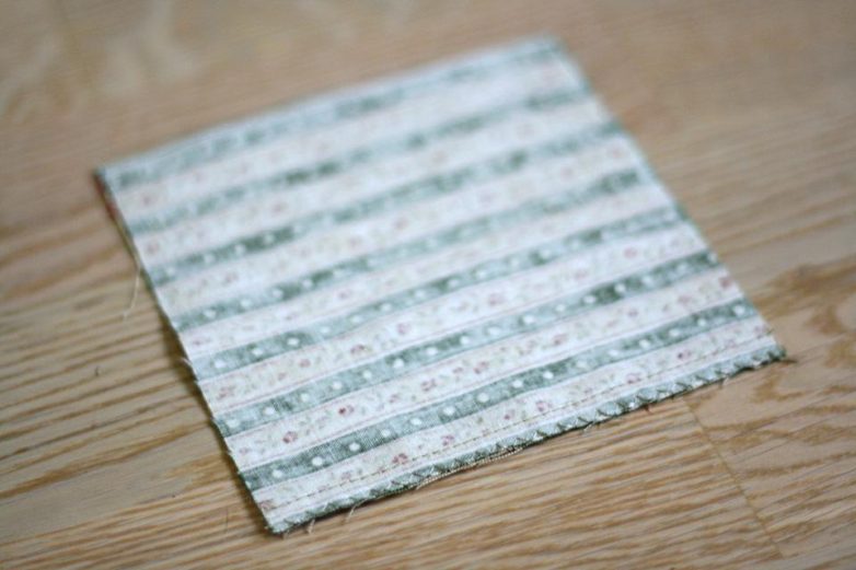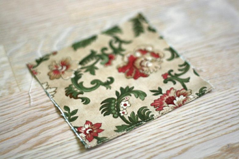 Начнем работу со сборки переднего кармашка. Складываем лицом к лицу квадратные детали.